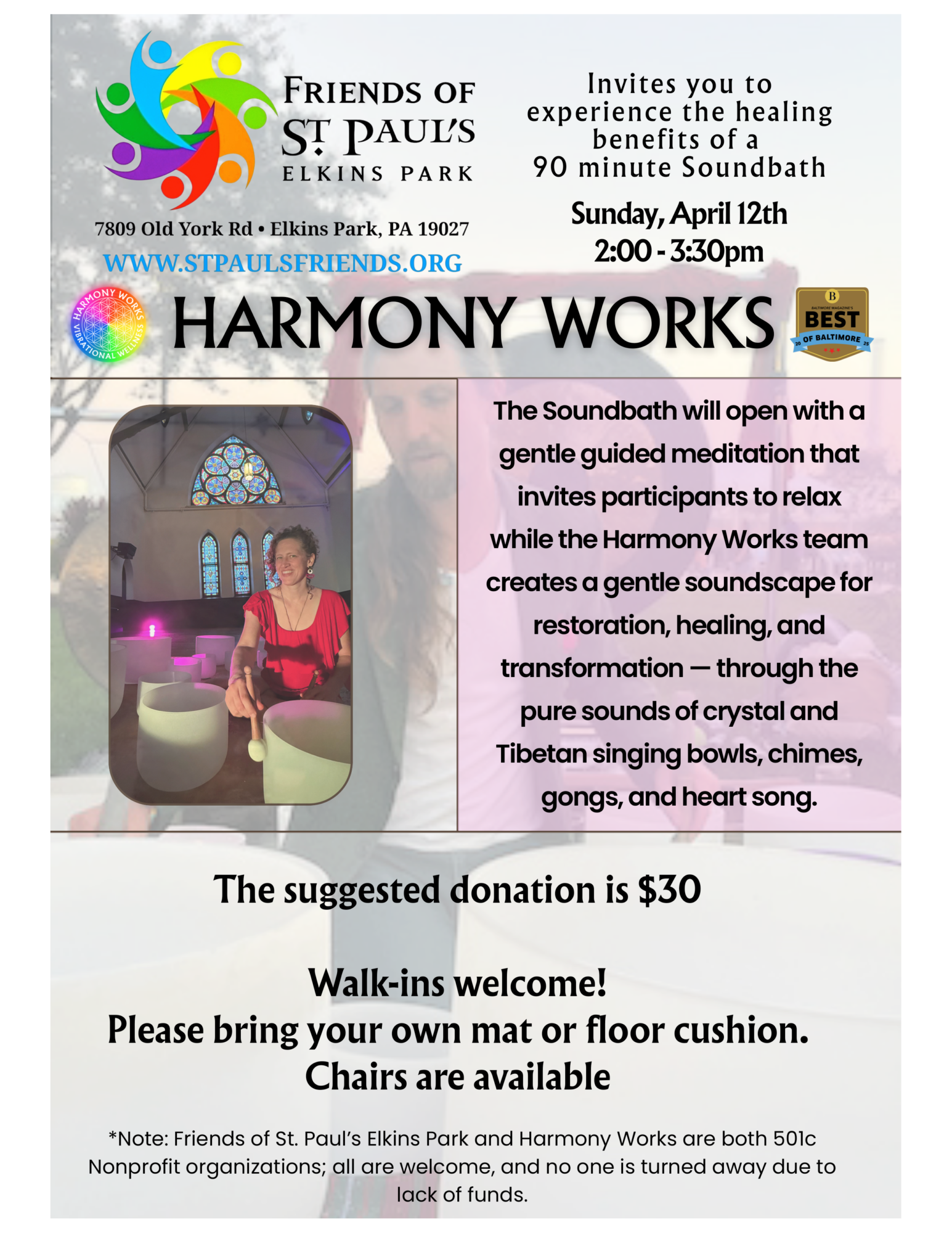 Experience the healing benefits of a Harmony Works Soundbath!